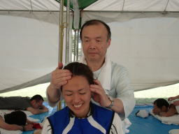 晴天に恵まれた平成16年4月18日、霞ヶ浦湖畔を中心コースとして第14回かすみがうらマラソン兼国際盲人マラソンかすみがうら大会が開催されました。 「甦れかすみがうら 水はスポーツの源」をメインテーマに 「体験する福祉 ノーマライゼーションの実践」をサブテーマに、盲人ランナーが伴走者と一緒に走る市民マラソン大会としては全国でも珍しく、全国ランニング大会100選の調査でも9位にランクされるほどの人気の大会となりました。 今年も300人の盲人ランナーと伴走者を含めて国内外から11000余名が参加をし、日頃鍛えた健脚を競い合いました。 当日我々会員は陸上競技場内仮設テントにおいて10時半より15時まで、30名の会員の導引のもとに、ゴールインしたランナーに対し、マッサージを通じてその疲労回復と社会参加の目的で治療活動を行いました。 第5回大会より実施している治療活動だけにその実績も浸透し、体験者は増加するばかり、16枚の治療布団はいつもフル回転で、ピーク時には受療待機者の行列ができるほどで、260人の施術をする事ができました。 受療者は年齢層も広く、単なる筋肉疲労ばかりでなく腰痛や下肢痛、時には痙攣直前のランナーもいて練習不足を感じさせる事例もありましたが、「マッサージ体験のできる大会は他にはない!」「楽になった!「来年も来ます!」…とお礼と感謝の声を聞く度にその効果を知らしめたと同時に、快い疲労感と共に達成感を感じる事ができた活動でした。 今回趣旨を理解して日立市部や水戸、柏市、東京から会員友人が応援参加をしてくださったおかげで予想以上の実績を上げる事ができました。 ありがとうございました。 土浦支部長 村山 一人 |