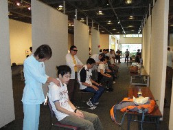 平成21年11月22日(日)多賀市民プラザ・大久保交流センターにおいて、日立市鍼灸マッサージ師会主催による恒例のチャリティー奉仕会を開催しました。 例年11月23日勤労感謝の日に開催していますが、本年は茨師会のセミナーがあり22(日)の開催に変更しました。本年は新型インフルエンザが流行しており各会場の入口に来場者用の消毒液を設置し、また施術者は、手指の消毒、マスクを着用して 感染予防に努めて行いました。 開会式では来賓の先生方より祝辞をいただきました。来場者は中高年の方が大半を占め、圧倒的に女性の方が多かったようです。中にはこの日を楽しみにしておられる方もあり喜ばしいことだと思います。 当日は、天候に恵まれなかったうえ、三連休の中日でもあり新型インフルエンザの流行も重なってか、来場者は例年より少なくなりました。 スタッフの連携も良く、大きなトラブルもなく、無事終了することができました。 なお、収益金は、社会福祉協議会を通じて「善意銀行」に寄付しました。 1.スタッフ35名(受付 7名含む) 2.来場者数152名(マッサージ108名、はり36名、きゅう8名) (報告:宇佐美政房 写真:根本つゆ子) |