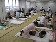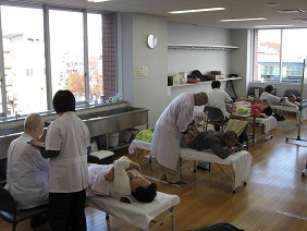 なお、収益金は日立市社会福祉協議会を通じ「善意銀行」へ寄付いたしました。 記 1.スタッフ 34名(受付者および外部協力者2名を含む) 2.施術内訳 マッサージ:134名 鍼:33名 灸:3名 (うち複数回利用34名) 〔追記〕 今年は、チャリティ開催前に地元のラジオ局[FMひたち]から、番組の[発掘、ひたちの元気人]のコーナーへ出演依頼があり、[チャリティ奉仕会]と[安心のマーク]の意味について紹介いたました。今回の放送をお聞きいただいた方がどれほどいたかは不明ですが、マスメディアを通じて私どもの業のアピールをしていくこと、また一般市民の方々へ日常生活における健康維持増進の一助としてお知らせしていくことは、大切なことではないかと感じました。 ( 報告 小室光義、写真 西野宮弘樹 ) |