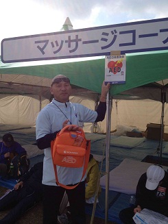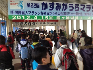 毎年恒例になりました、「かすみがうらマラソン兼国際盲人マラソンかすみがうら大会」が2012年4月15日に開催され、土浦支部(村山一人支部長)所属会員をはじめ日立支部や県内各支部の会員、筑波技術大学の学生など、例年にない45人という大勢が参加し、343人のランナーに対してマッサージを施しました。 この大会は、平成3年1月21日、土浦市制施行50周年を記念し、伝統の10マイル「第25回土浦ロードレース大会」と併せて「甦れ、霞ヶ浦 水はスポーツの源」をメインテーマに開催したのを第1回かすみがうらマラソン大会としてスタートしました。 第5回大会(平成7年)からは「全国盲人マラソン大会」を併催し、視覚障害者はもとより国民の大きな反響を呼びました。平成8年からは「世界盲人マラソン 大会」となり、現在では世界各国からたくさんの盲人アスリートも参加しています。 昨年は、東日本大震災が発生し、やむなく大会を中止いたしましたが、今大会は観光庁の後援をいただき、2万人強の参加者を迎え、特に大きな事故もなくかすみがうらマラソン大会も無事終えることができました。 毎年参加者が増えている要因には、地元の皆様の多大なる応援体制、ボランティアの皆様の協力もさることながら、我々の行うマッサージボランティアの果たしている役目が大きいことは間違いありません。 また、当日は会員の所有するAEDも持参し万一に備えて配備しましたが、もちろん使わないで済みました。でもAEDがあるだけでも安心できました。 今後も会としてなにかのイベントに参加するときは、AEDを用意するようにしましょう。 (報告 写真:狩野平左衛門岳也) |