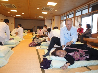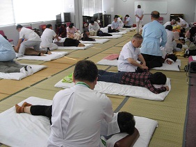 (社)茨城県鍼灸マッサージ師会(師会長 仲澤 進)では平成22年8月8日日曜日に茨城県総合福祉会館にて第2回茨城県鍼灸マッサージ祭を開催しました。この事業は鍼灸マッサージの日の関連イベントとして昨年から始まりました。 午前10時よりコミュニティホールにおいて、市民公開講座「泣き笑い健康法」と題し、日本医科大学名誉教授 吉野クリニック院長 吉野慎一先生による講演を会員、一般含め100名近い参加者の中で行われた。泣いたり笑ったり眠ったりすることがストレス解消、免疫力向上、痛みの減弱につながることをわかりやすくお話しいただき当初予定になかった質疑応答が活発に行われました。また、先生がリウマチの専門医ということでリウマチ患者も相当数来場しておりました。今後の運営に役立てるため、参加者にアンケートを記入していただきました。その後、会員でもある村上守、村上真理子ご夫妻によるギターとフルートによるミニコンサートがあり、大好評でした。 12時15分から15時までは「鍼灸マッサージ体験コーナー」を開設。1階では鍼灸治療を行いました。3階では畳の部屋に布団を敷いてマッサージ体験とフロアでは椅子に座ってのマッサージを行いました。当日は水戸の黄門祭りやひたちなかのロックフェスティバルと重なり、参加者数の心配する声がありましたので、今後は時期や場所など考慮しながら次年度以降も継続していきたいと思います。 (報告:伊藤 徳也・いとう のりや) |