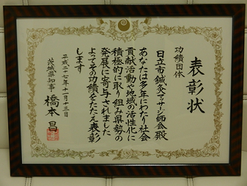 ●日立支部(日立市鍼灸マッサージ師会)が「茨城県功績賞」として表彰
