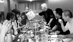 豪華(?)賞品が出るこのボウリング、会場のダイヤレーンでもイベント中で、ダブルで賞品がゲットできるチャンスを物にしようと、激しい戦いが繰り広げられました。戦いの後は、食事会。賞品を貰う人を見ながら、次回の大会では是非とも優勝するぞと心に決めた人が、居たとか居ないとか・・・