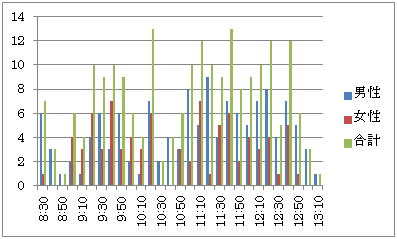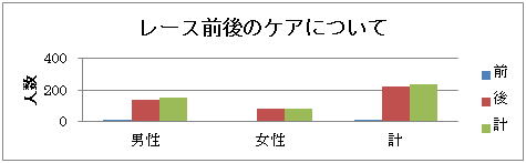 男性でレース前にケアに訪れた選手が10名で、他は全員レース後だった。 |