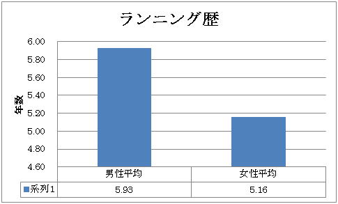 男性132名、女性77名中、平均ランニング歴は男性5.93年、女性5.16年であった。 |